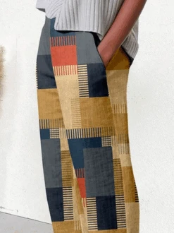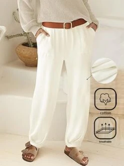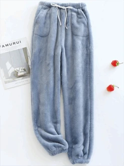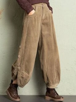 Corduroy Winter Fleece Plain Corduroy Casual Elastic Band H-Line Straight Long Pants With Pockets