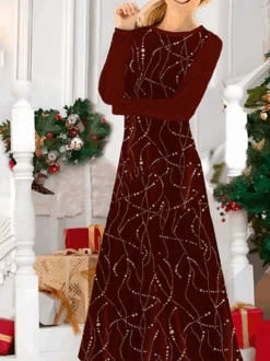 Christmas Daily Knitted Regular Fit Crew Neck Casual Festival Long Sleeve Fit & Flare Maxi Dress