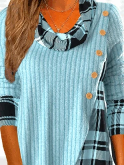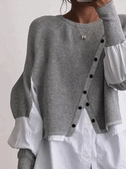 Lace Hollow Out Plain Casual Patchwork Notched Neck Tunic Top Buttoned Design Long Sleeve Shirt